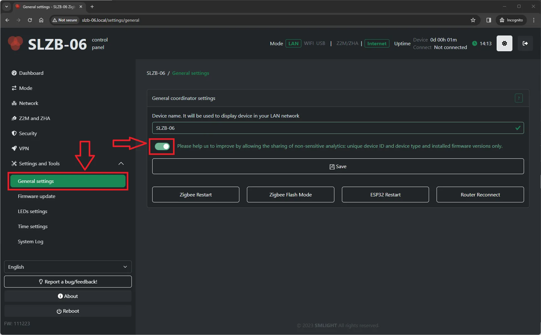 Non-personalized analytical data is shared ONLY when the option is enabled, via Secured HTTP (HTTPS) protocol. The Analytics system was first introduced in new SLZB-06's firmware 2.0.0.