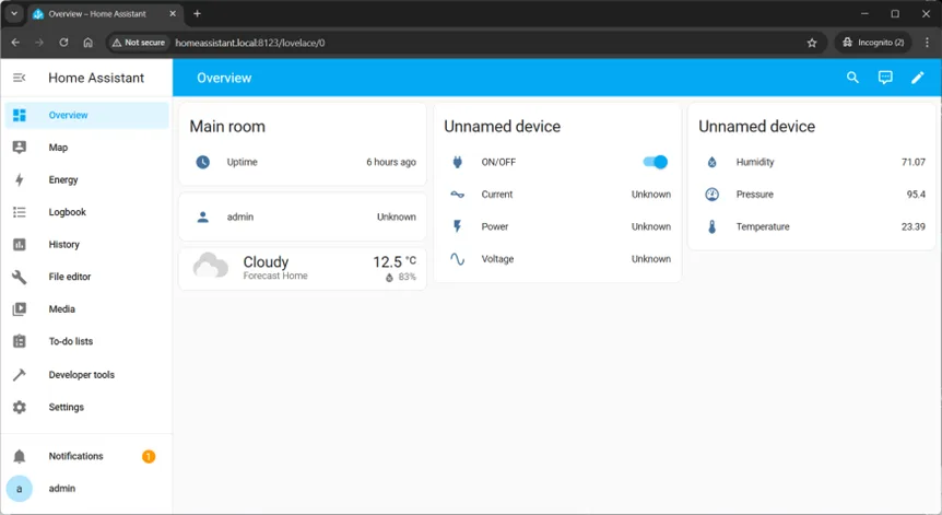 Go to Home Assistant, and check that device appeared in the Home Assistant dashboard as well.