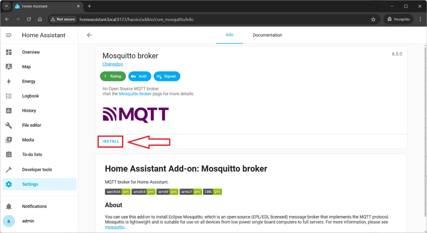Installto install MQTT Add-on.