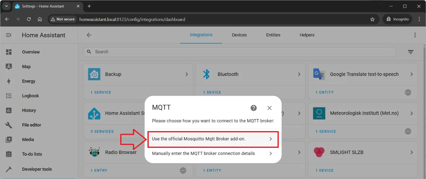 Once MQTT addon installed, go to tab