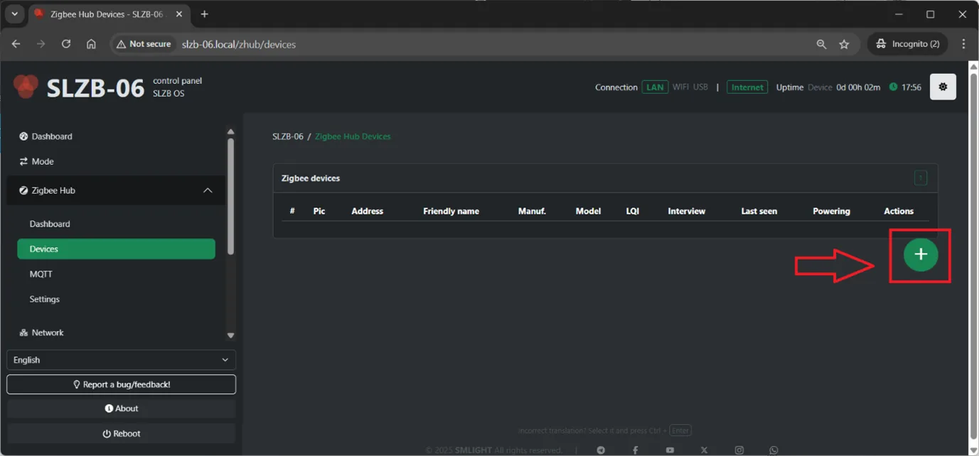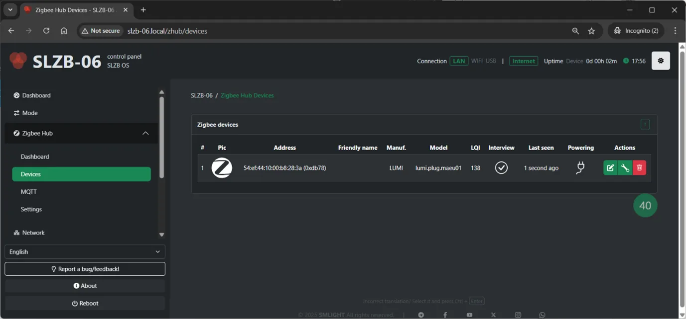 Now, you can see devices in the SLZB-06x Zigbee dashboard, go to