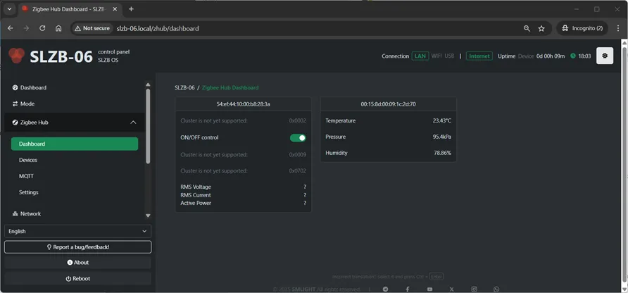 - Web-Based Interface: Pair and control devices directly via the SLZB-06's web UI.