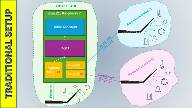 - User has Home Assistant / Zigbee2MQTT at his apartment, and wants to cover remote garage or summer house with just a few devices, so does not want to make ti complex with second instance of Z2M;
