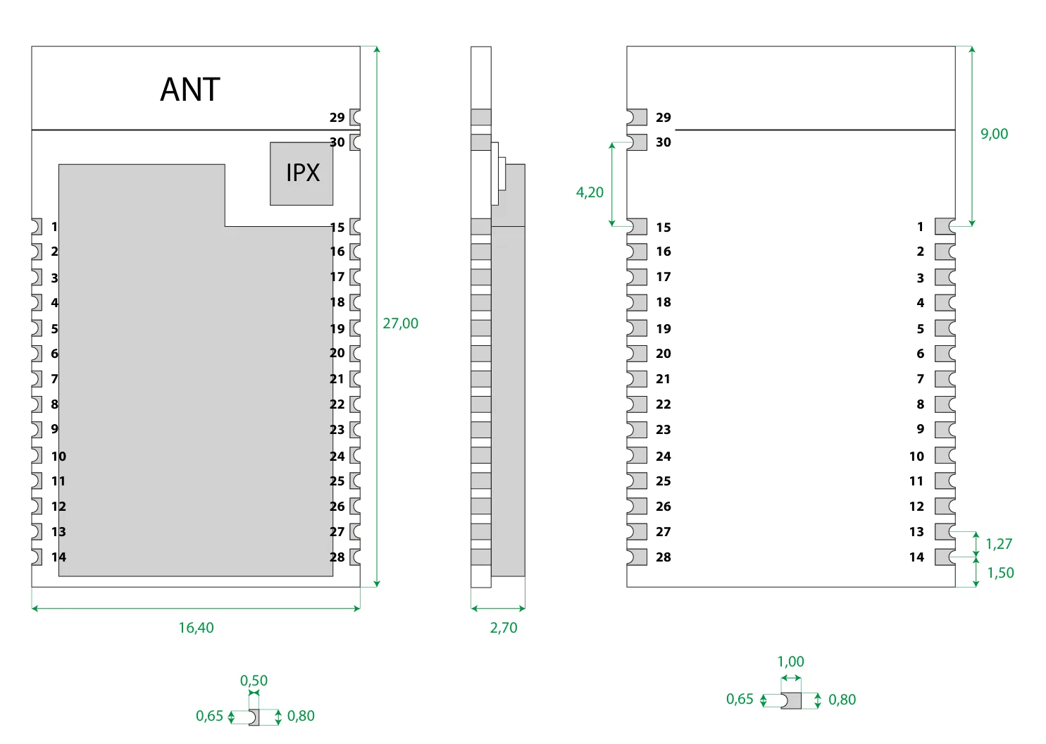 - Pin Pitch: 1.27 mm