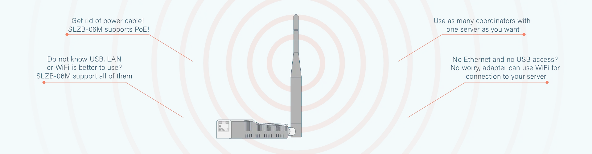 Now you can put your adapter wherever you want! SLZB-06M is a small and tiny!