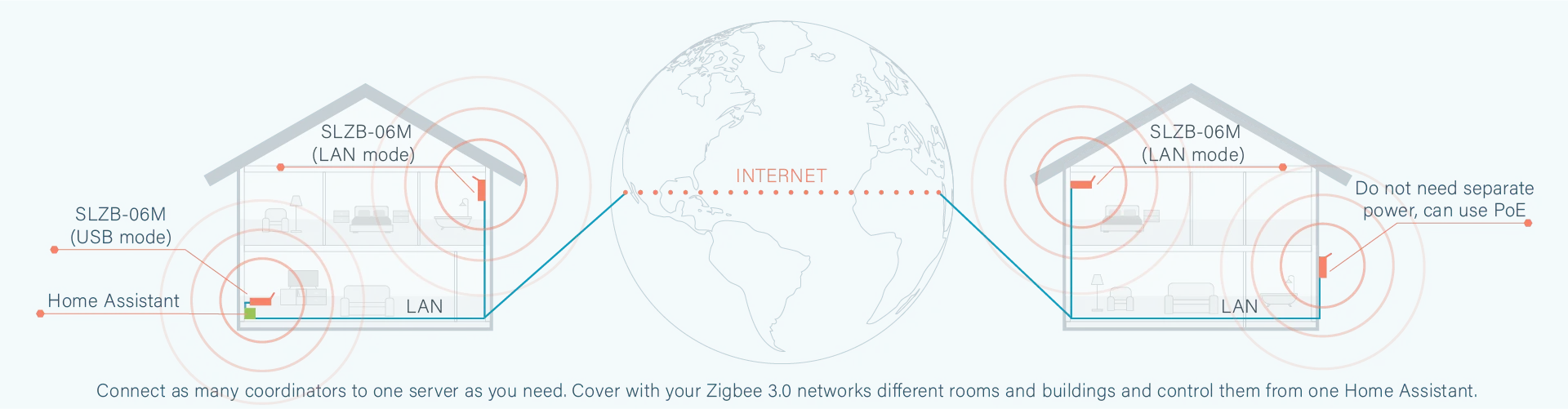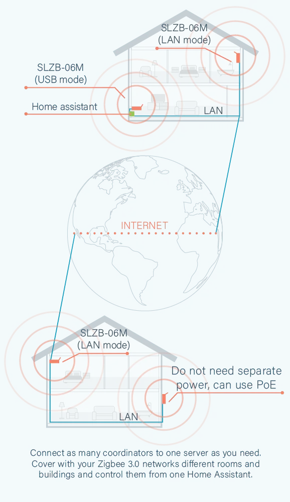 Zigbee 3.0 SLZB-06M adapter has +20dB amplifier on board & +5dB antenna. Cover your farthest locations