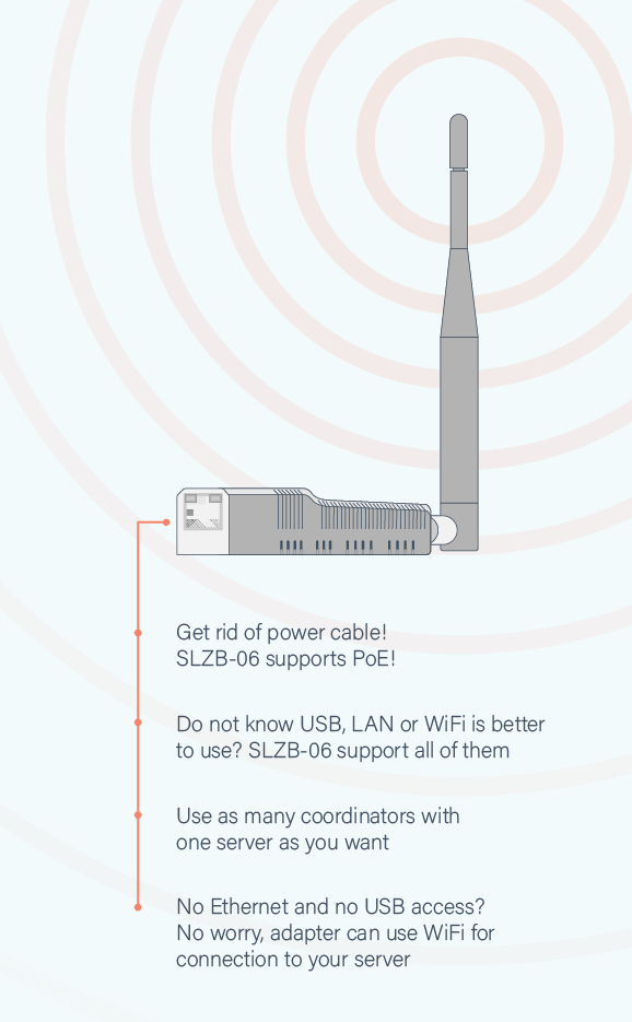 Zigbee 3.0 SLZB-06 adapter has +20dB amplifier on board & +5dB antenna. Cover your farthest locations