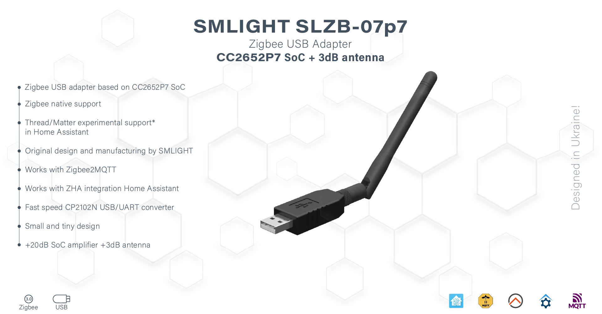 SLZB-07p7 has the smallest design among all Zigbee USB EFR32 based adapters with external antenna!