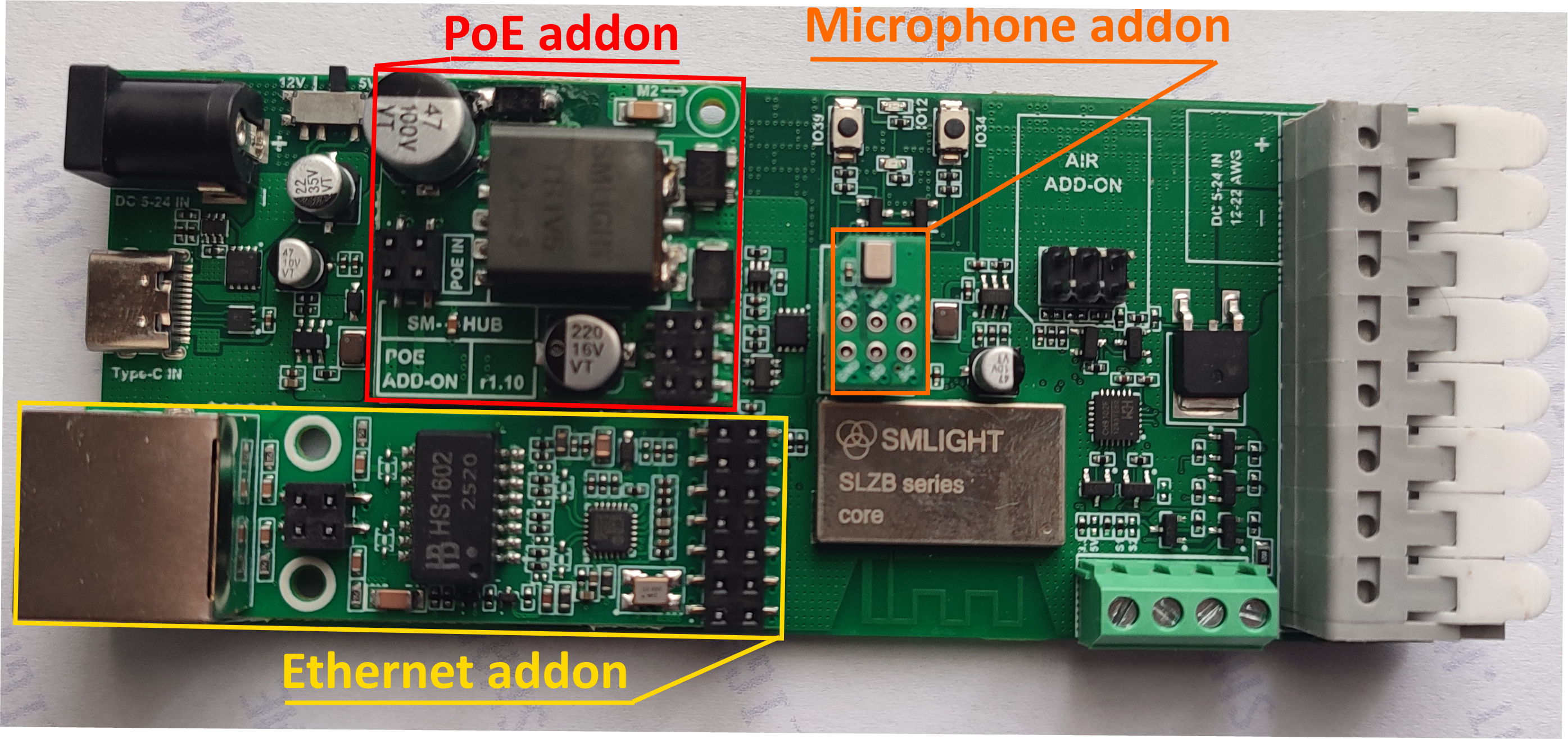 Can be used together with the Ethernet add-on for single-cable operation.