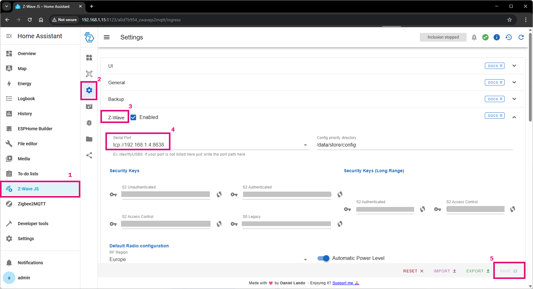 Z-Wave JS UI (or other TCP-compatible Z-Wave host)