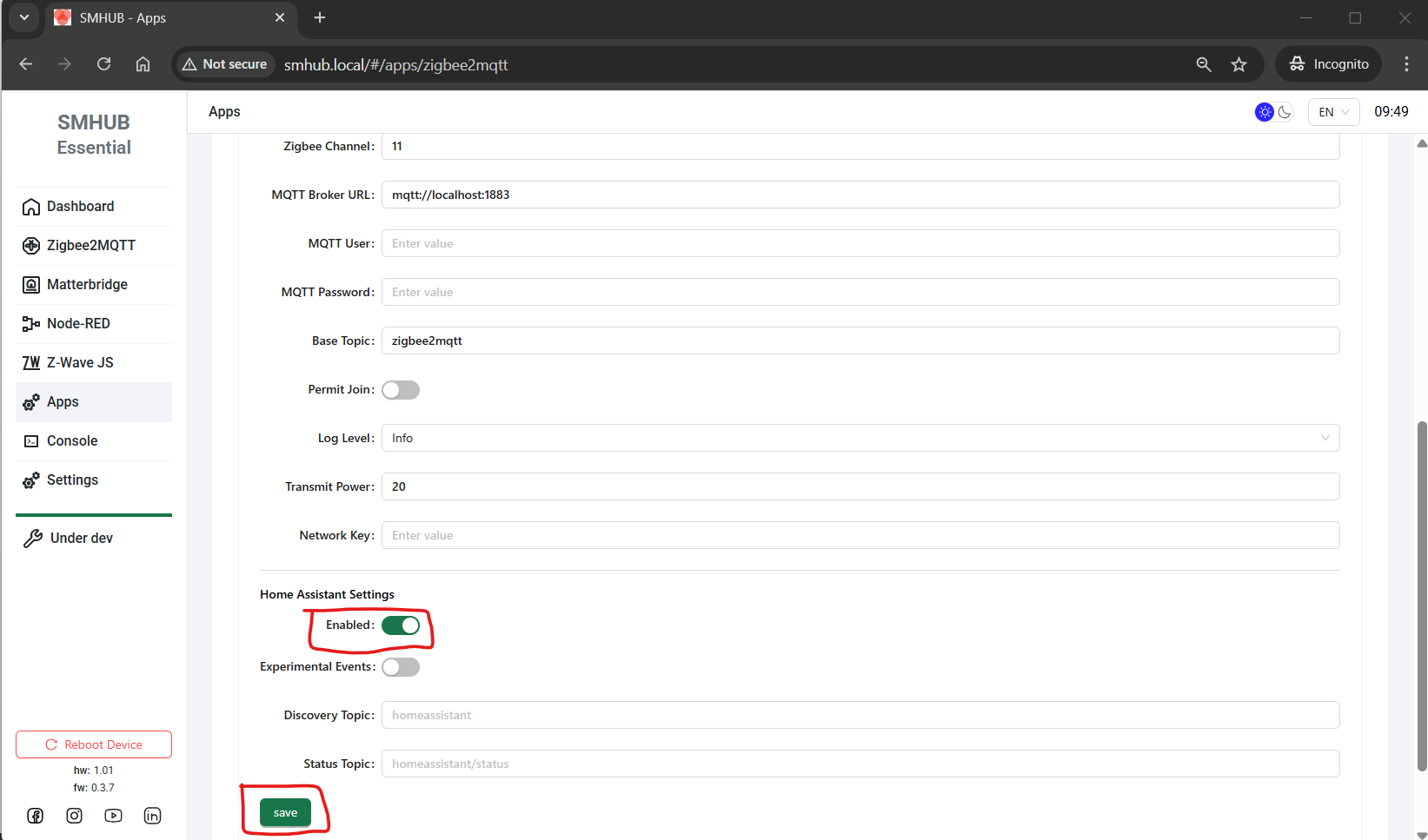 Connecting Zigbee2MQTT on SMHUB to Home Assistant