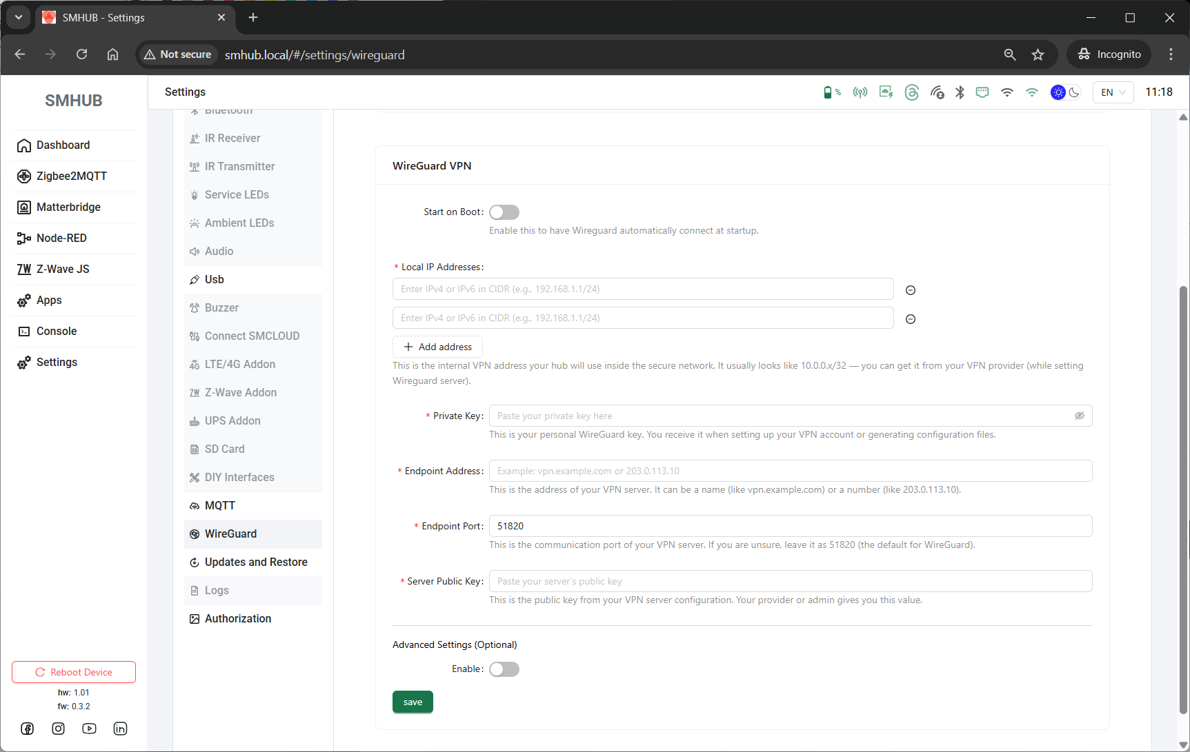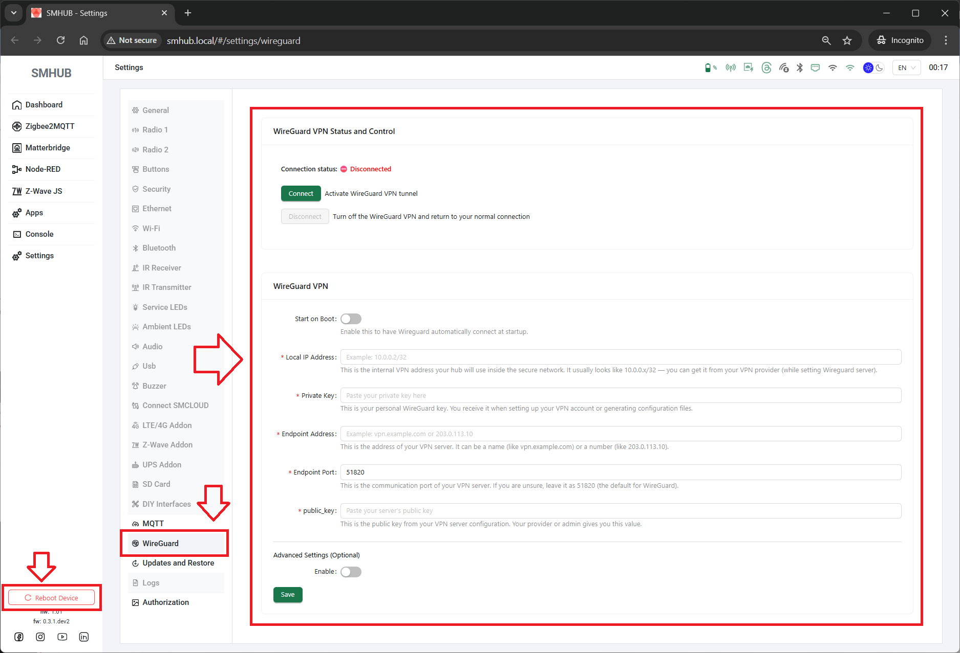 You can now configure SMHUB’s built-in Wireguard client directly from the interface.