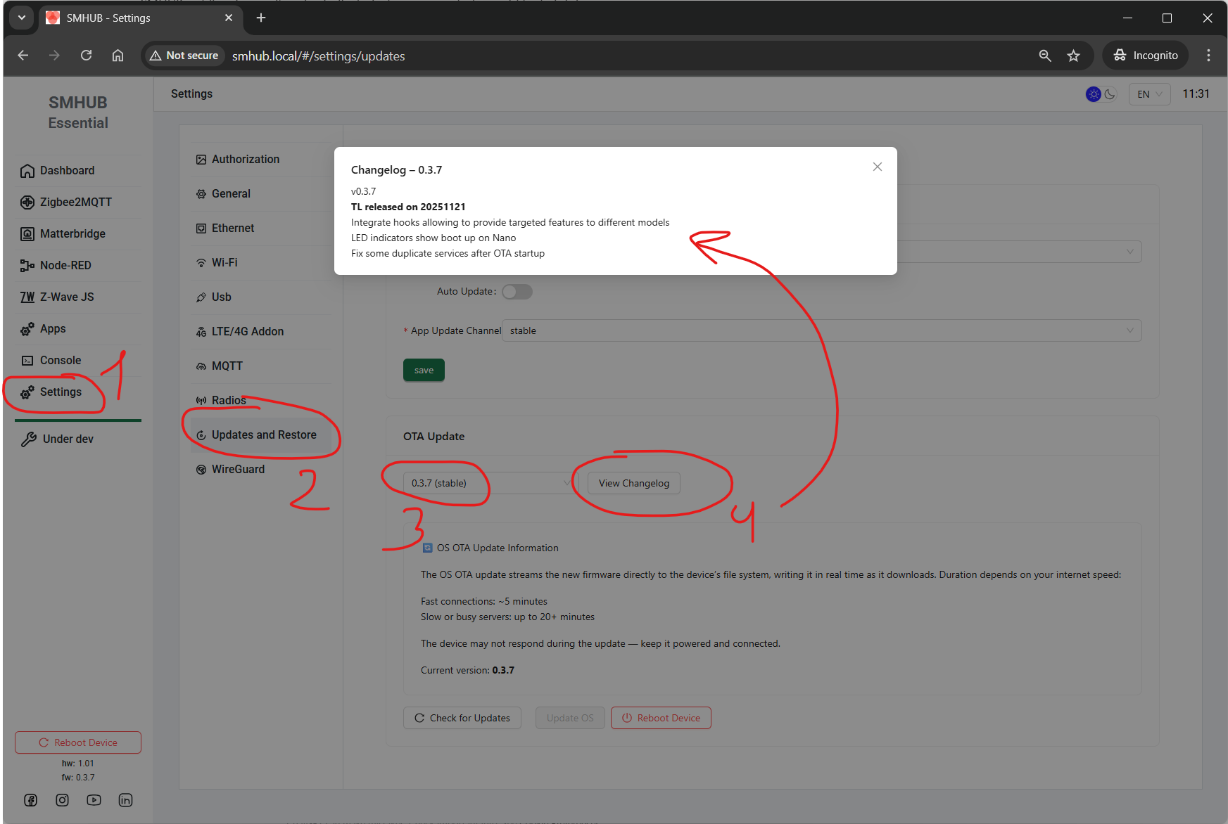 Before updating to SMHUB OS 0.2.2, please follow this exact sequence: