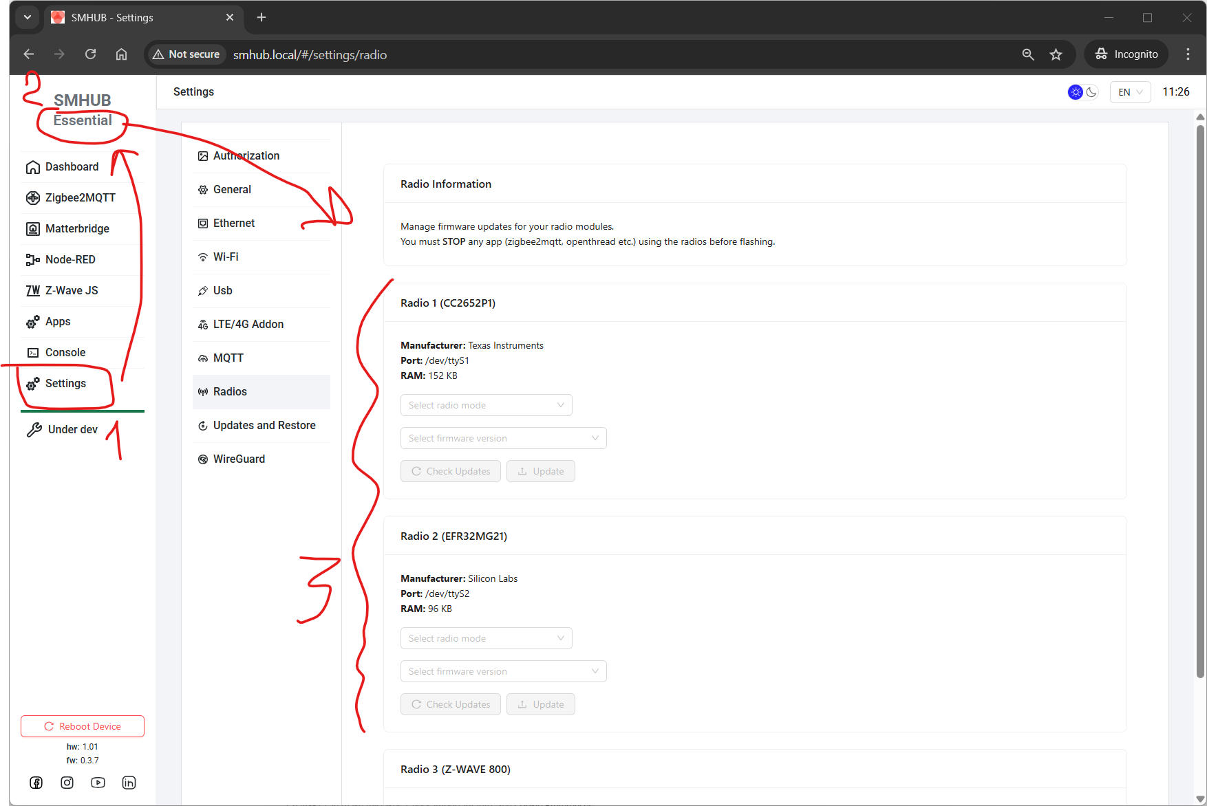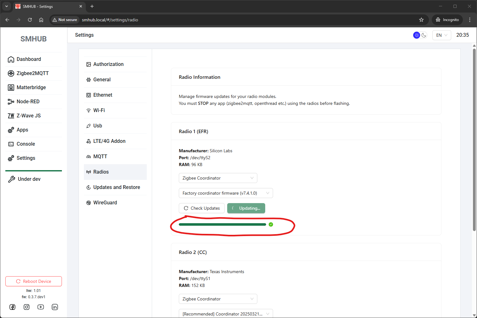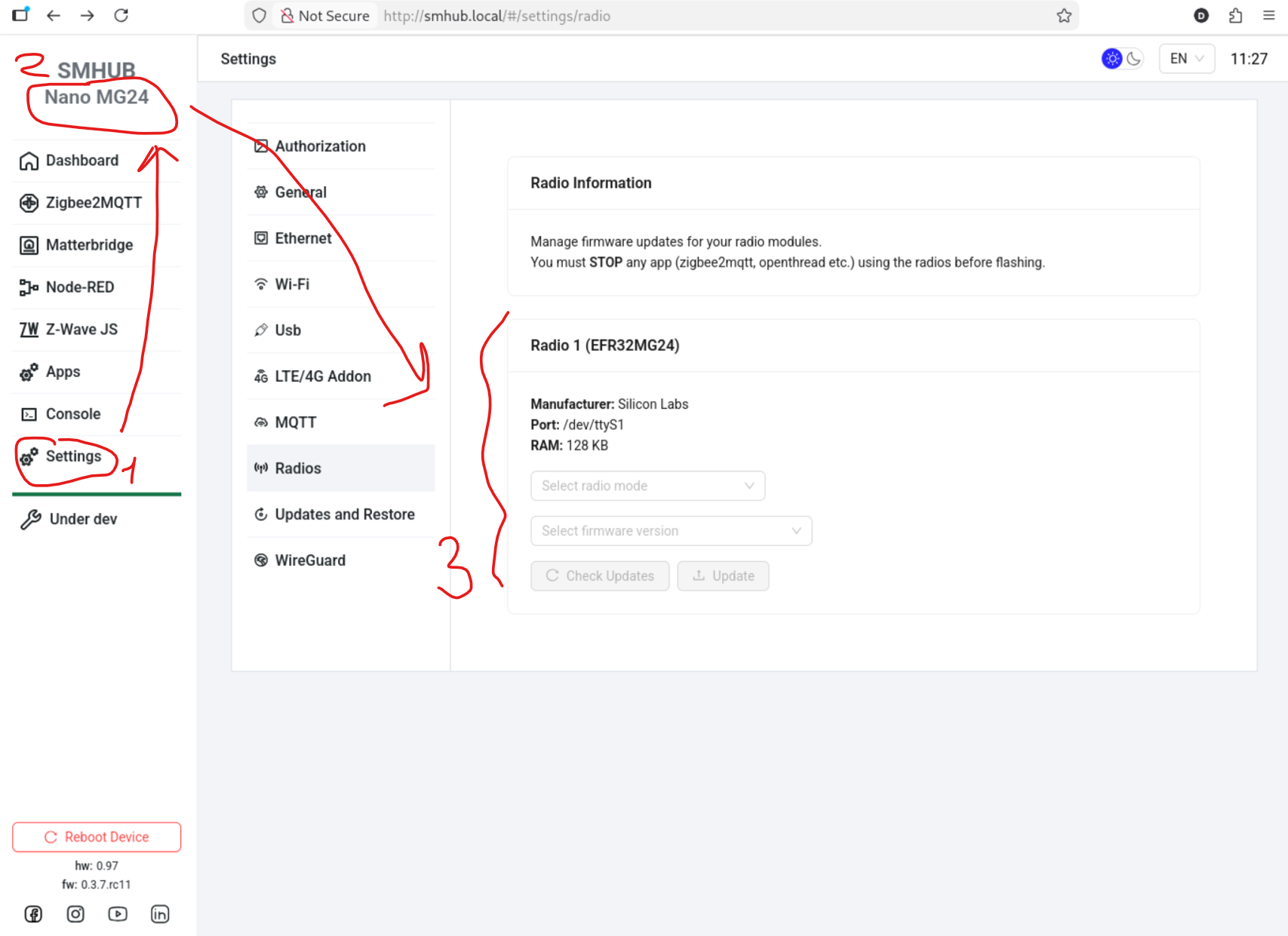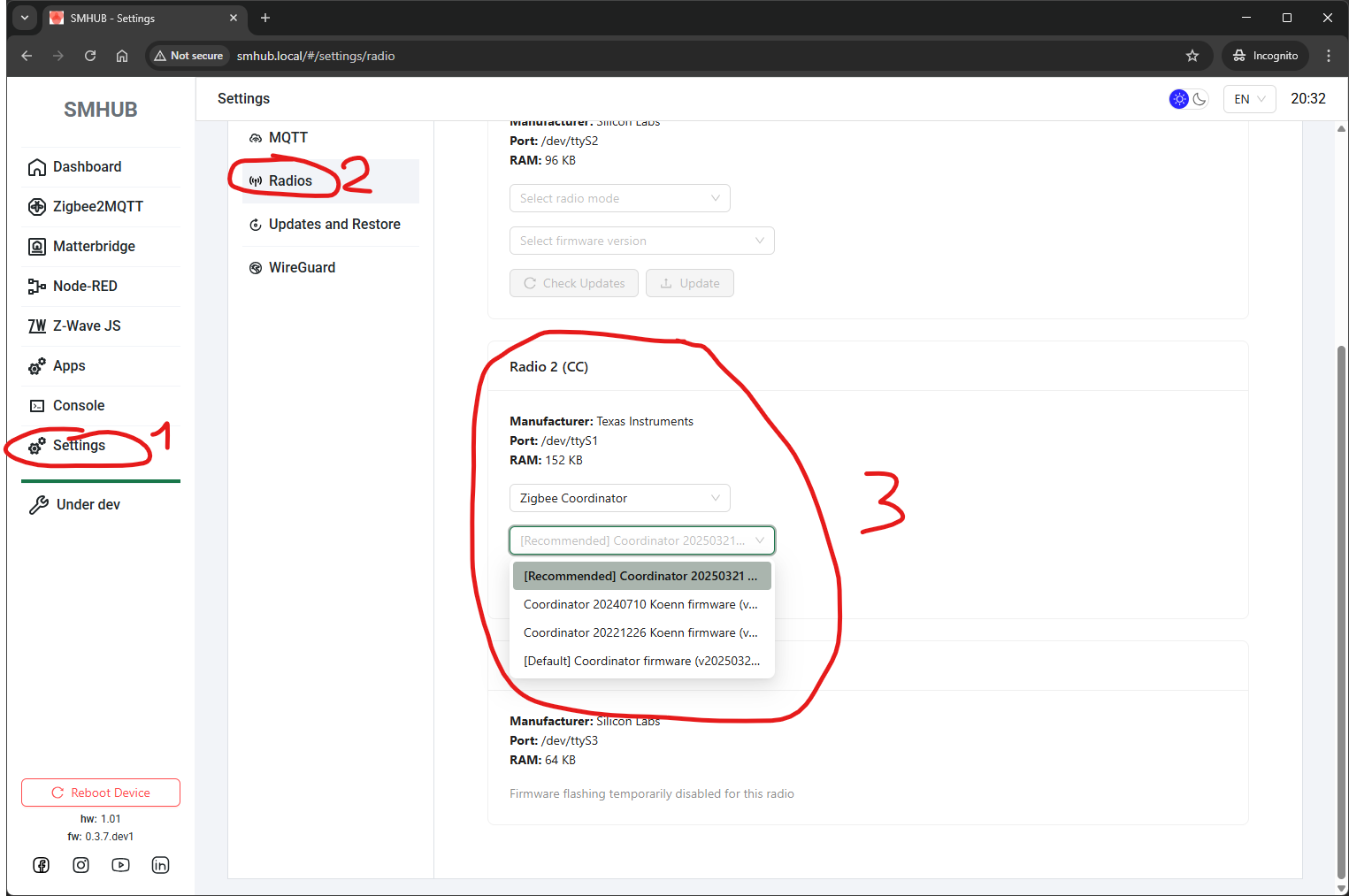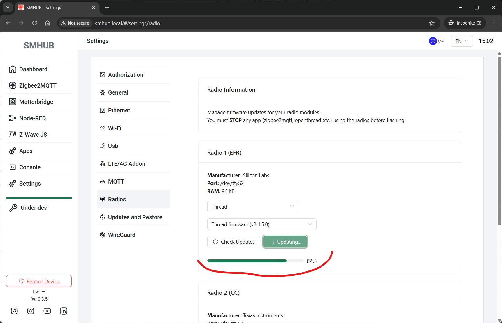 Added built-in support for flashing EFR32 radio firmware directly from the SMHUB interface.