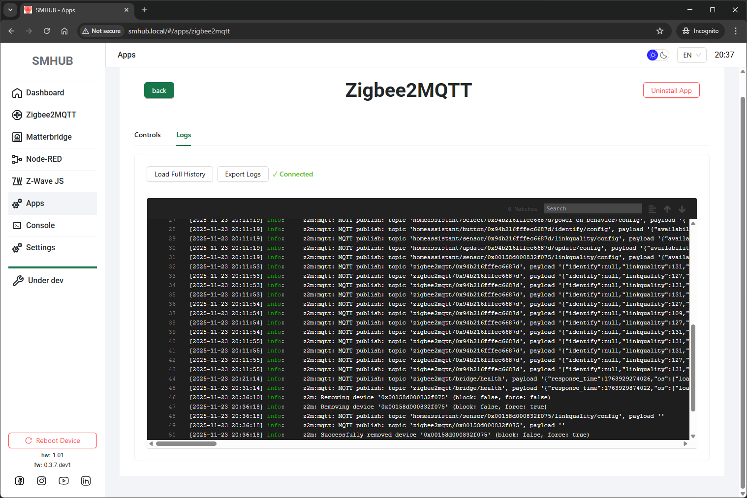 🧾 Fixed application logs for Web and Z-Wave apps