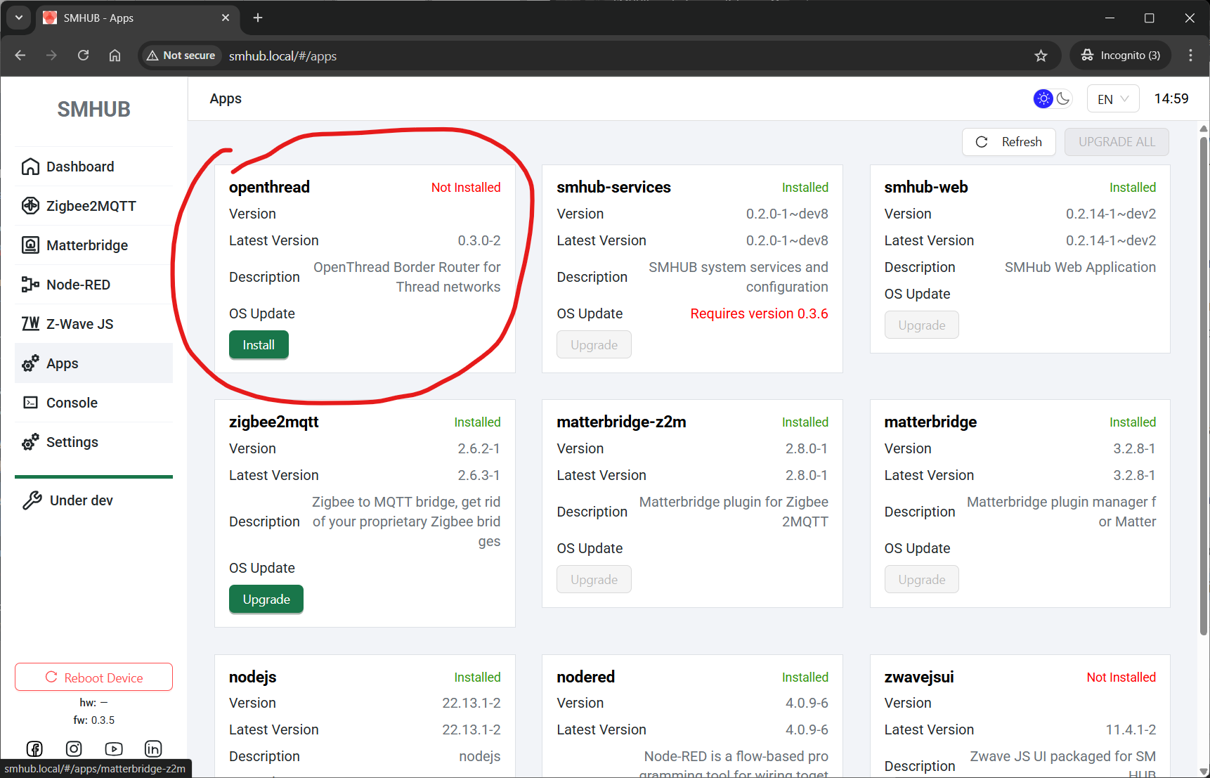 SMHUB can now be configured as an OpenThread Border Router directly through the UI.